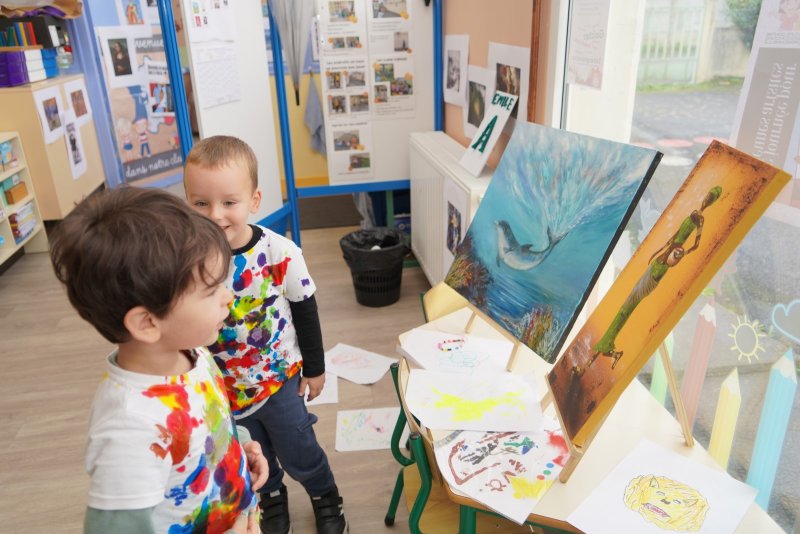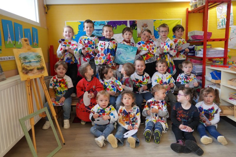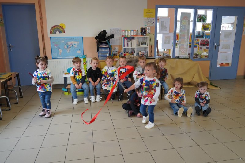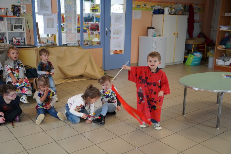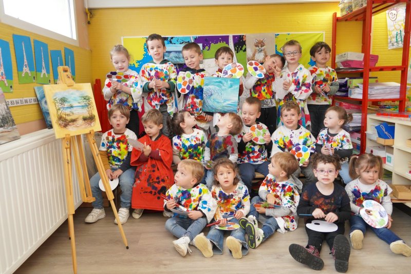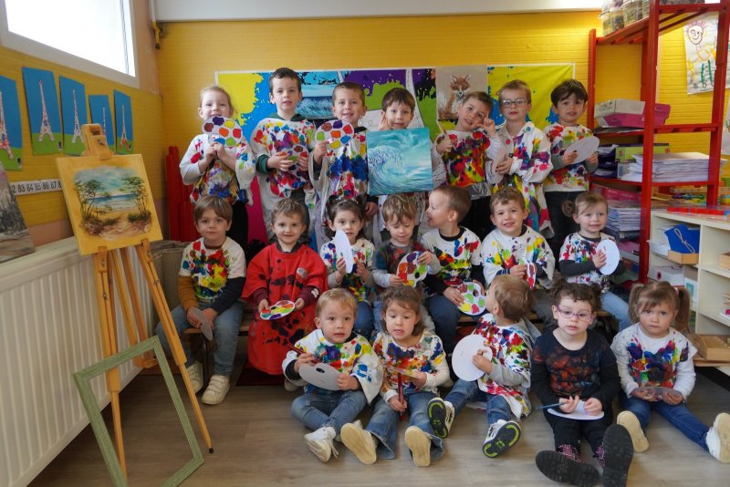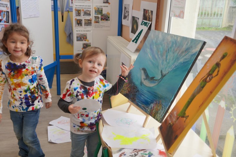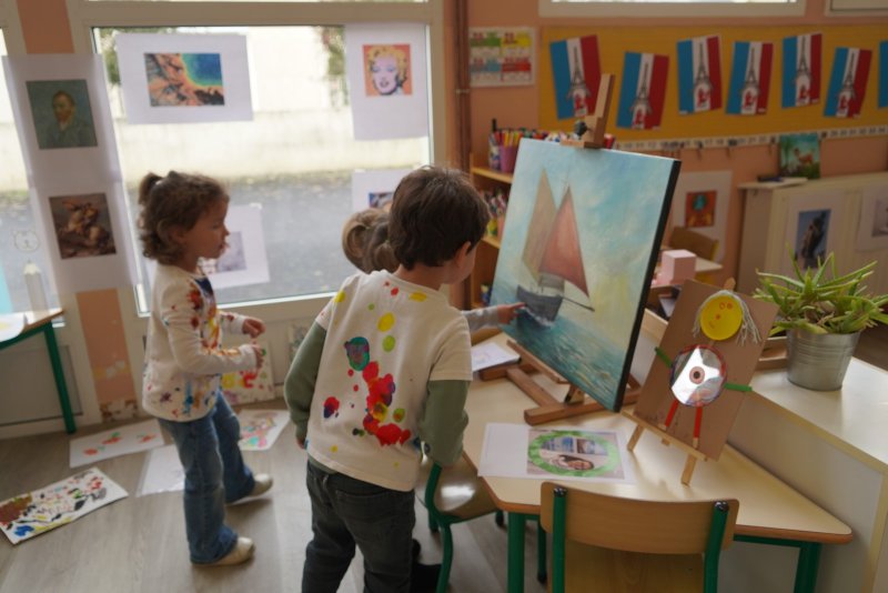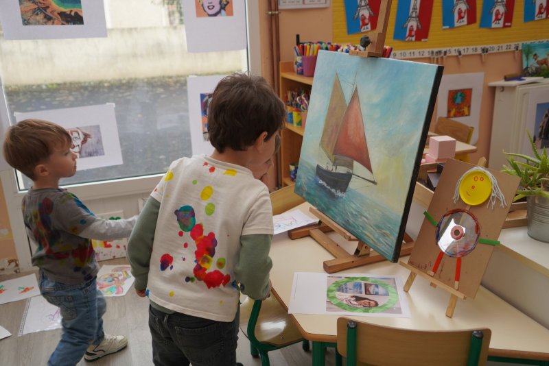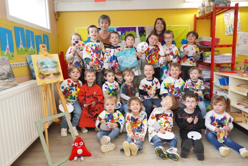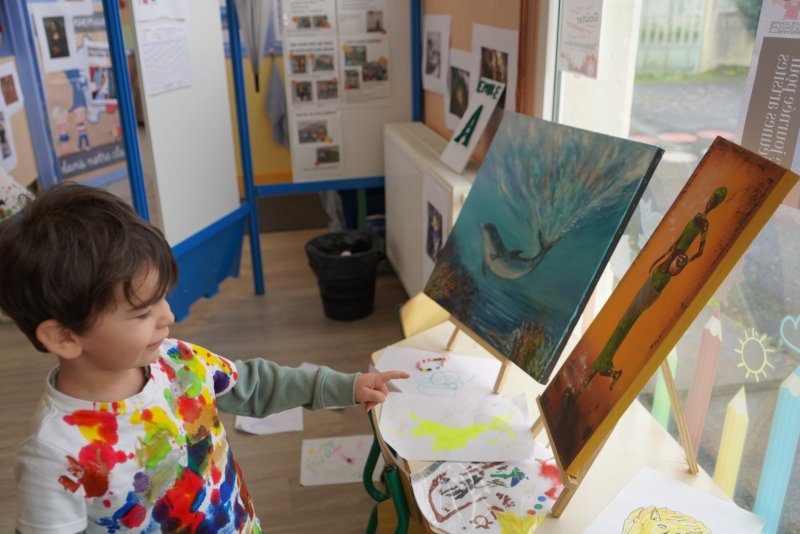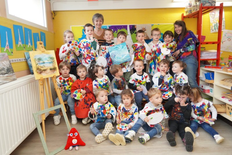 Comme au musée, les murs de la classe étaient décorés de copies d’oeuvres d’art célèbres et de toiles originales d’une mamie d’élèves artiste peintre, Irène Pouvreau. Les enfants ont participé à de nombreux ateliers comme l’apprentissage d’une chanson sur les couleurs, un jeu de mémoire sur les artistes et leur matériel, la réalisation d’une fresque représentant des immeubles et des monuments parisiens, l’écoute d’albums sur les musées parisiens, des activités motrices ludiques comme le sculpteur et sa statue ou le jeu des statues.