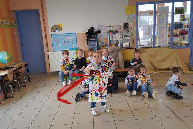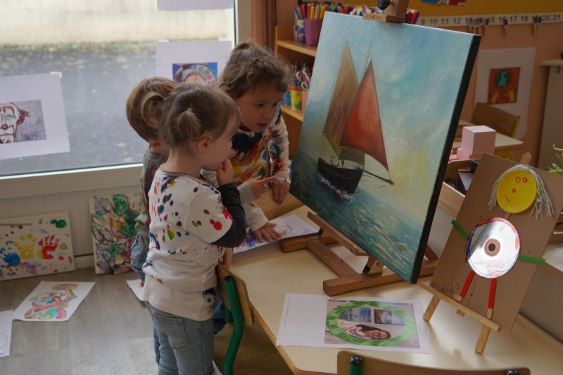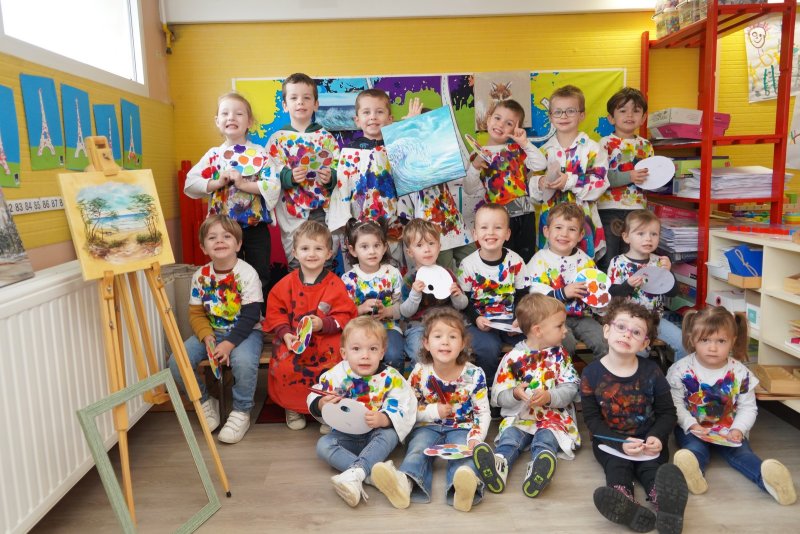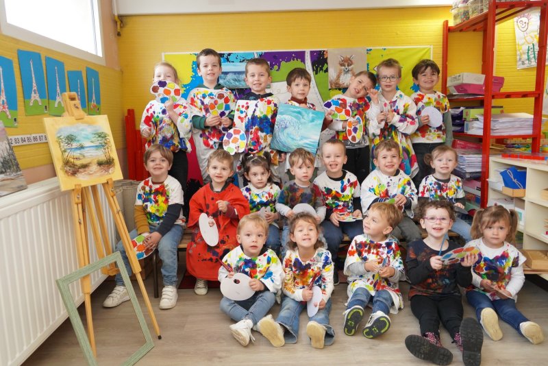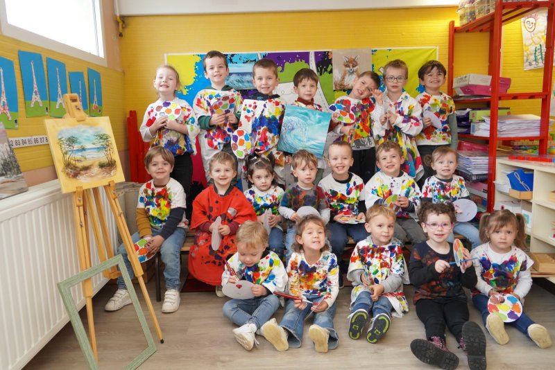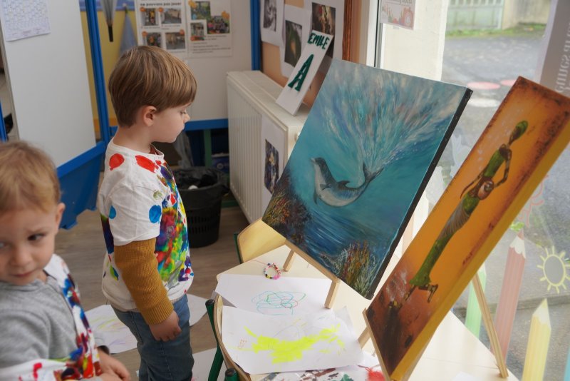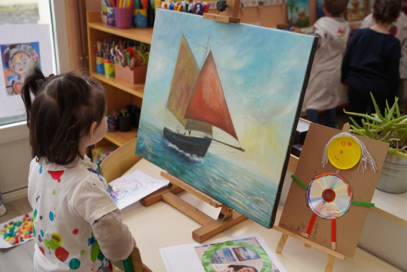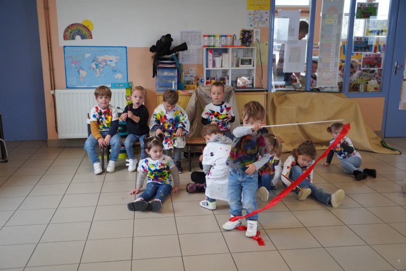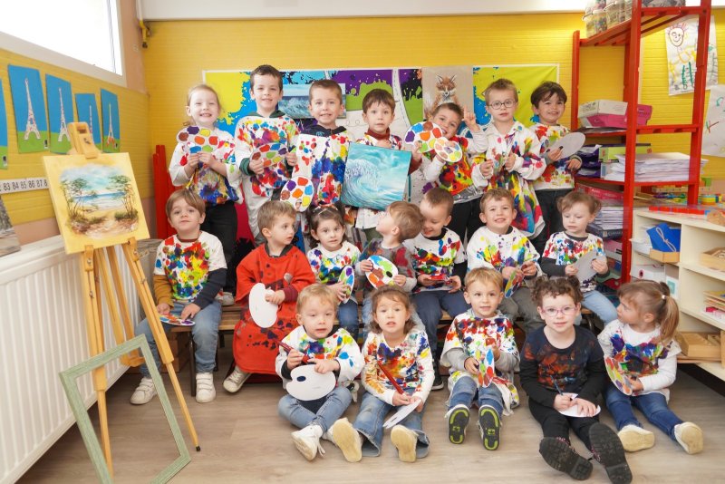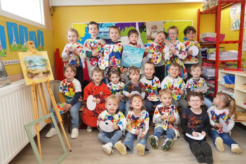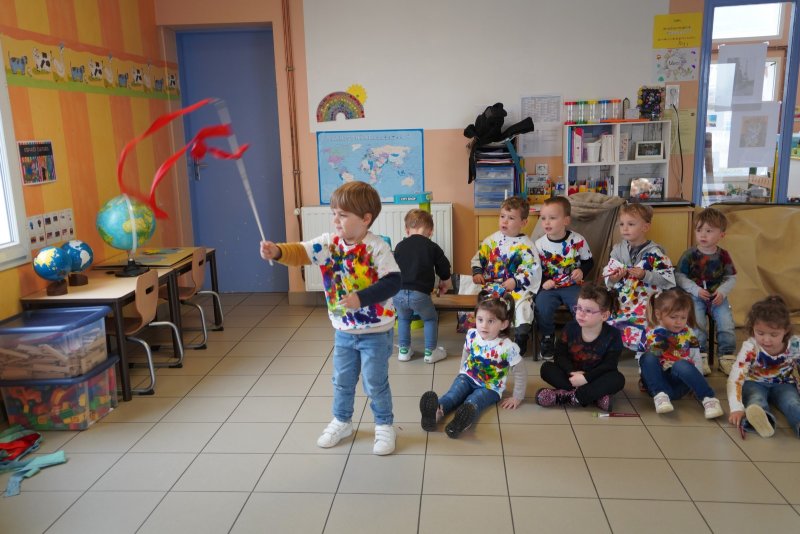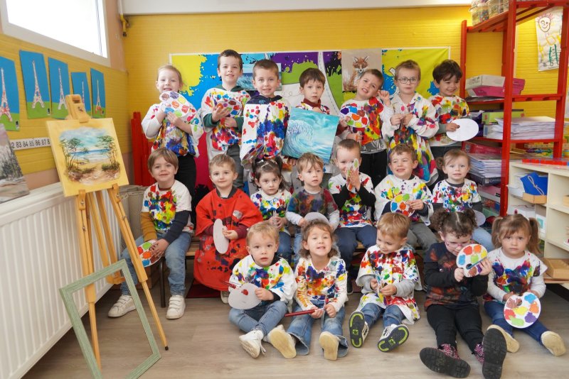 Comme au musée, les murs de la classe étaient décorés de copies d’oeuvres d’art célèbres et de toiles originales d’une mamie d’élèves artiste peintre, Irène Pouvreau. Les enfants ont participé à de nombreux ateliers comme l’apprentissage d’une chanson sur les couleurs, un jeu de mémoire sur les artistes et leur matériel, la réalisation d’une fresque représentant des immeubles et des monuments parisiens, l’écoute d’albums sur les musées parisiens, des activités motrices ludiques comme le sculpteur et sa statue ou le jeu des statues.