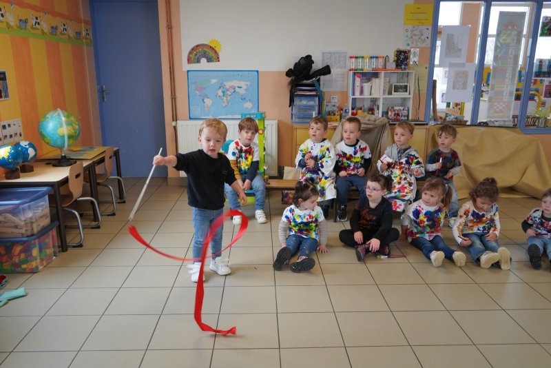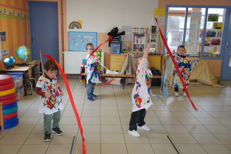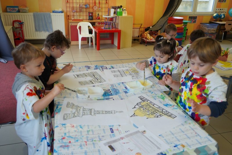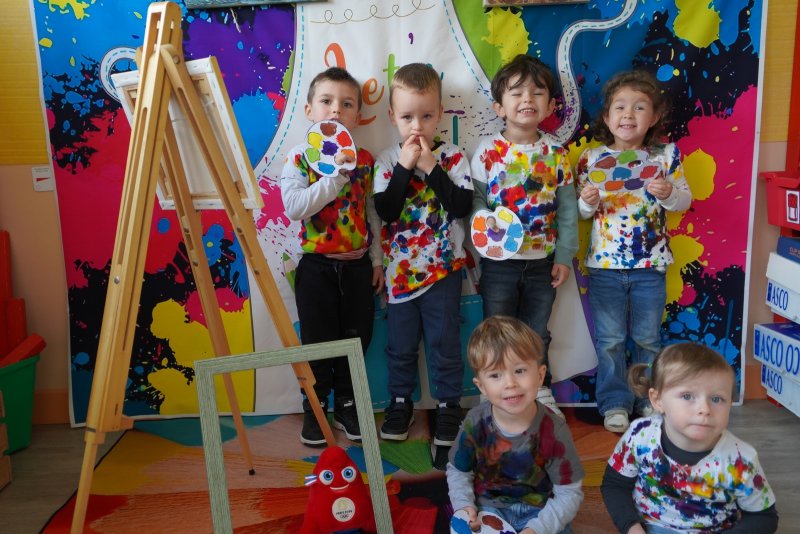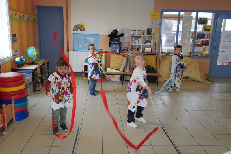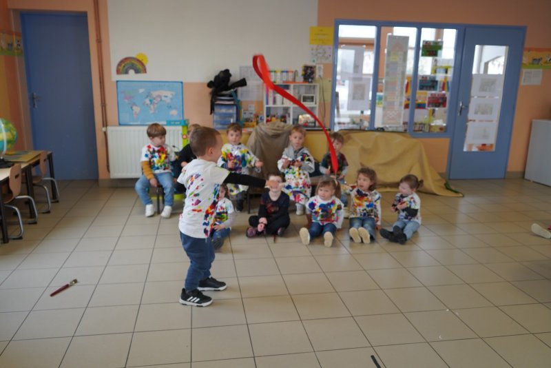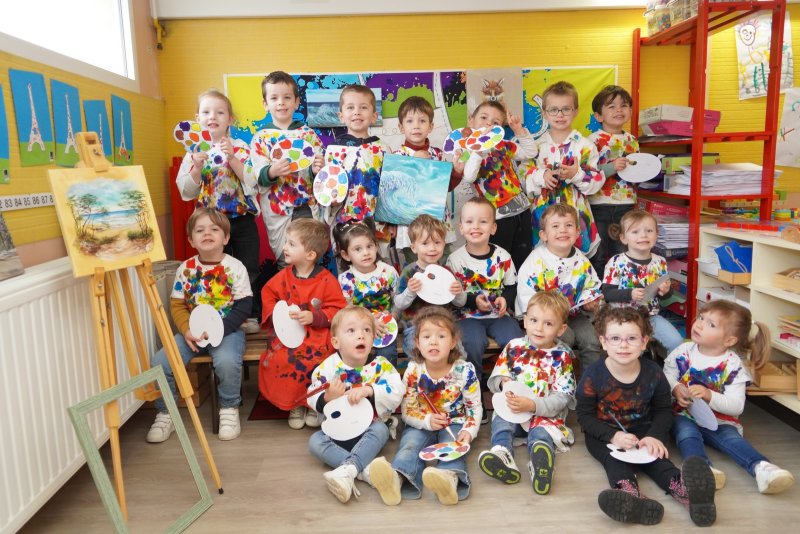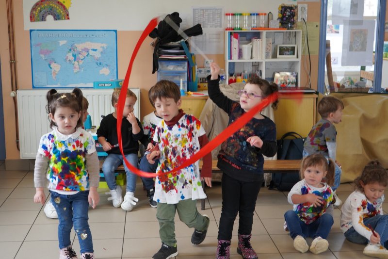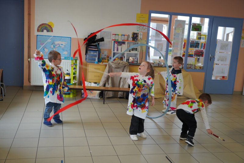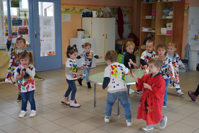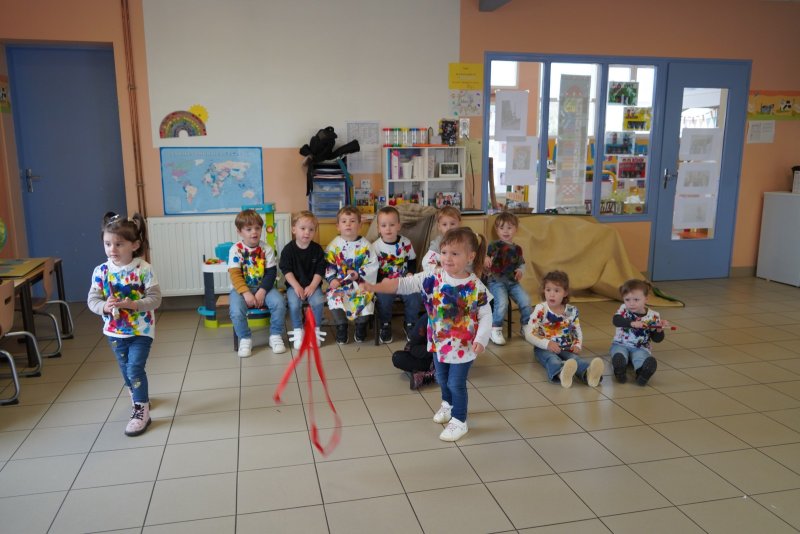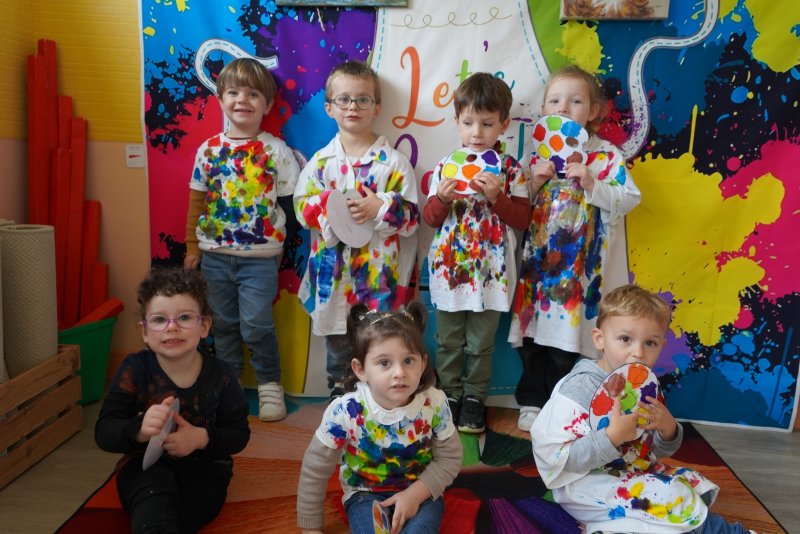 Comme au musée, les murs de la classe étaient décorés de copies d’oeuvres d’art célèbres et de toiles originales d’une mamie d’élèves artiste peintre, Irène Pouvreau. Les enfants ont participé à de nombreux ateliers comme l’apprentissage d’une chanson sur les couleurs, un jeu de mémoire sur les artistes et leur matériel, la réalisation d’une fresque représentant des immeubles et des monuments parisiens, l’écoute d’albums sur les musées parisiens, des activités motrices ludiques comme le sculpteur et sa statue ou le jeu des statues.