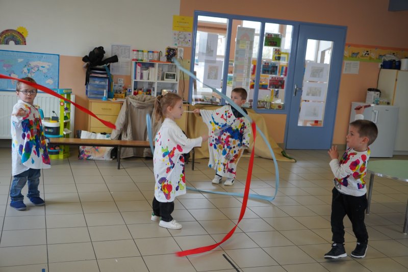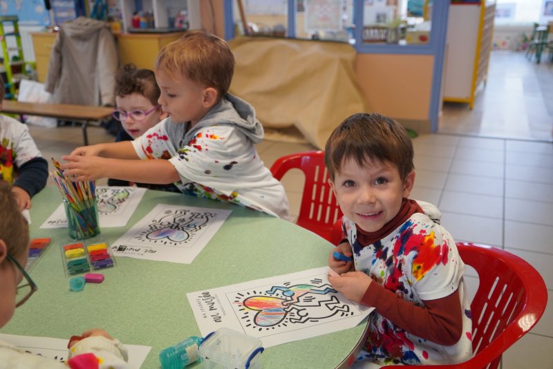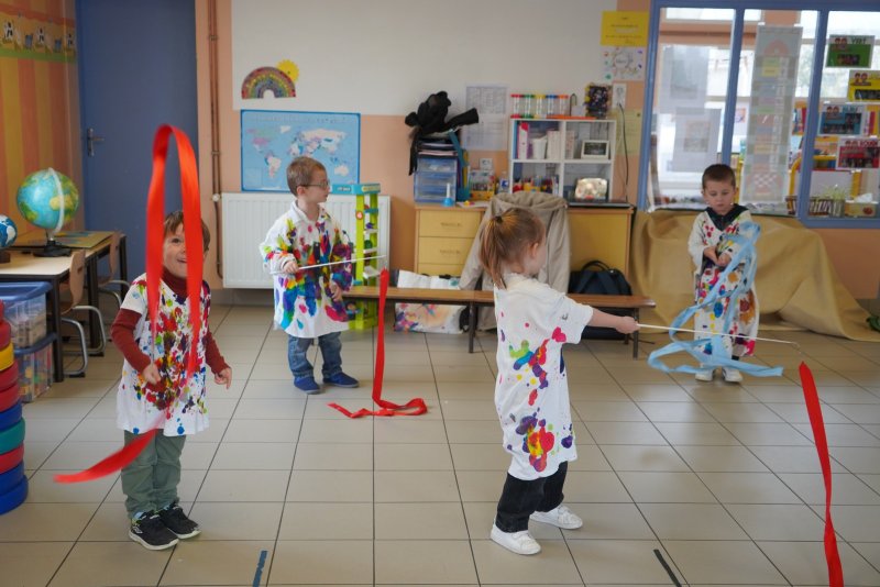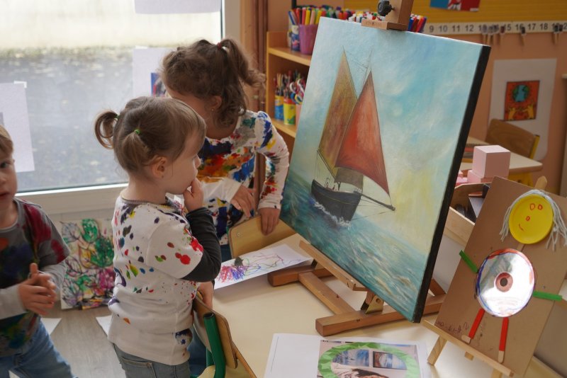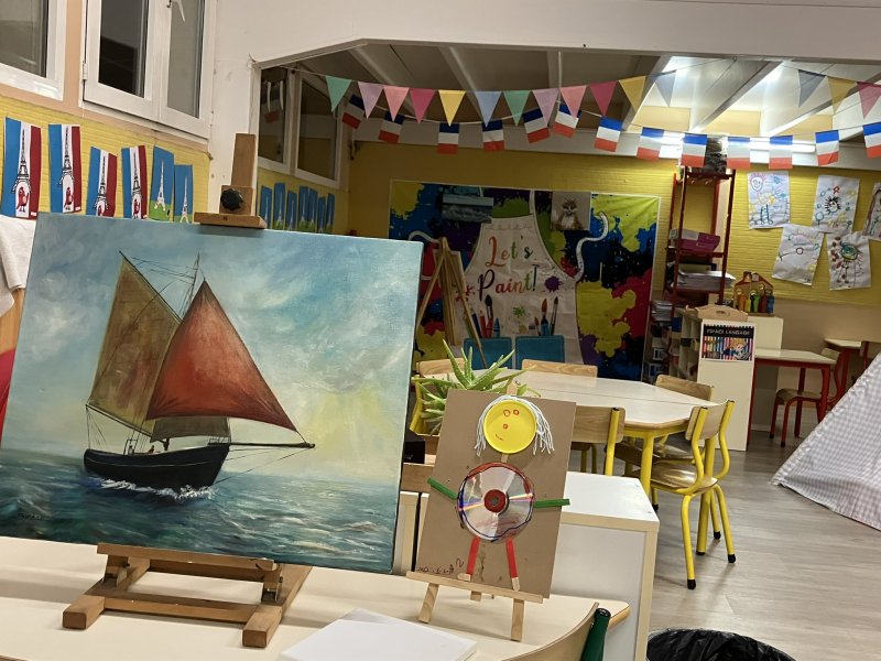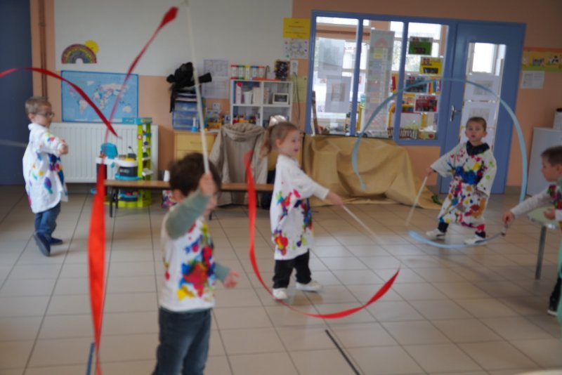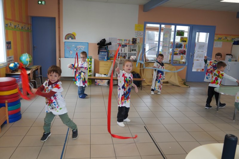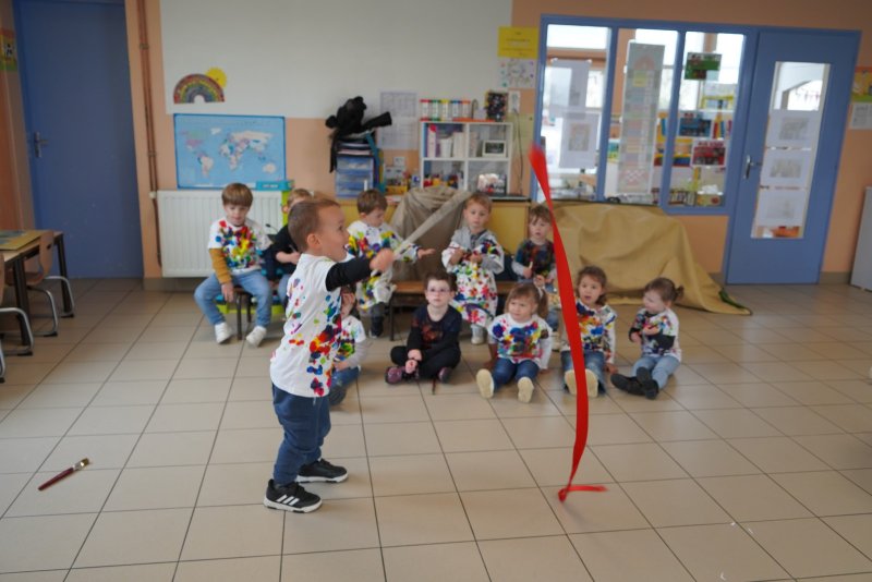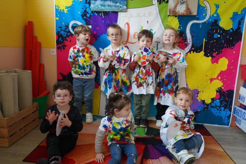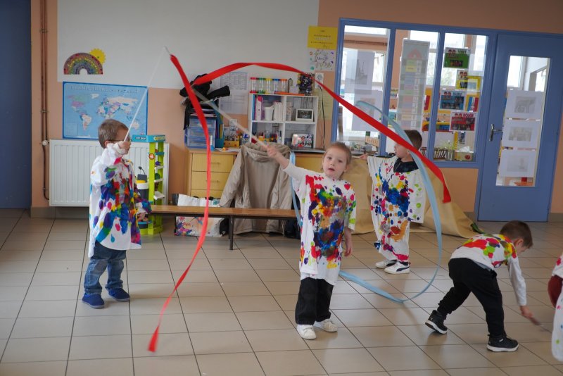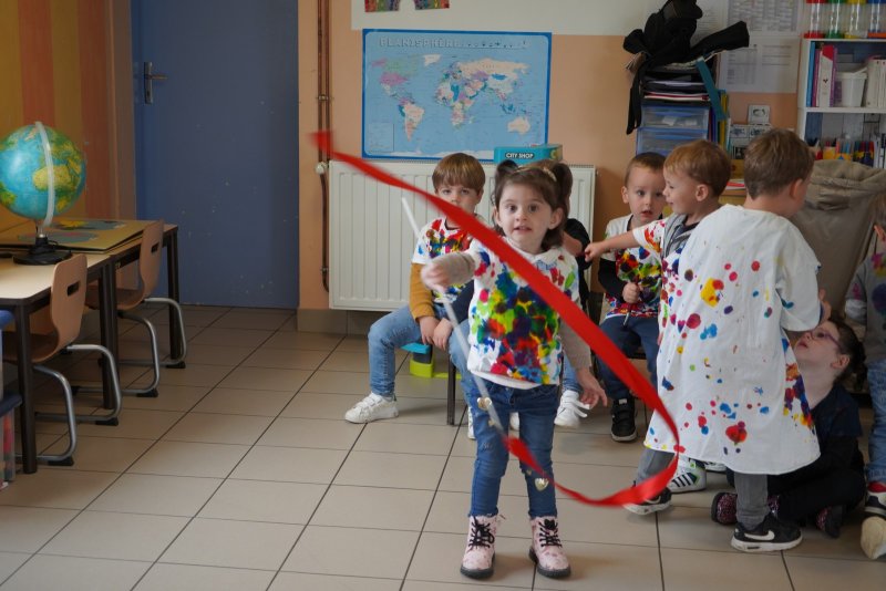 Comme au musée, les murs de la classe étaient décorés de copies d’oeuvres d’art célèbres et de toiles originales d’une mamie d’élèves artiste peintre, Irène Pouvreau. Les enfants ont participé à de nombreux ateliers comme l’apprentissage d’une chanson sur les couleurs, un jeu de mémoire sur les artistes et leur matériel, la réalisation d’une fresque représentant des immeubles et des monuments parisiens, l’écoute d’albums sur les musées parisiens, des activités motrices ludiques comme le sculpteur et sa statue ou le jeu des statues.