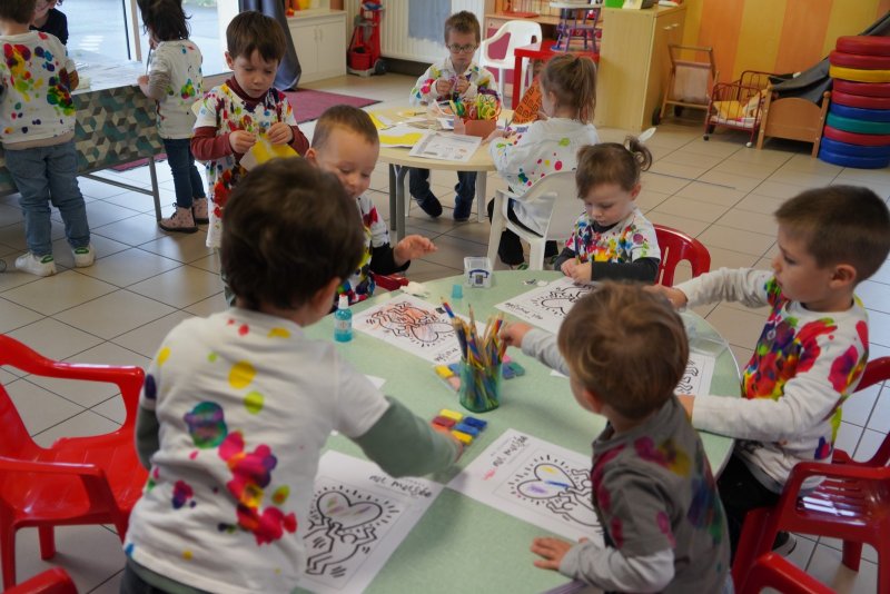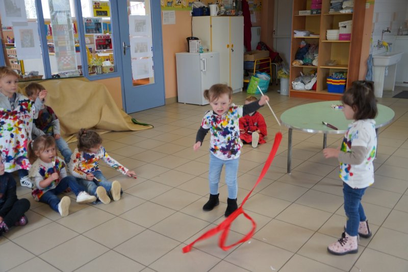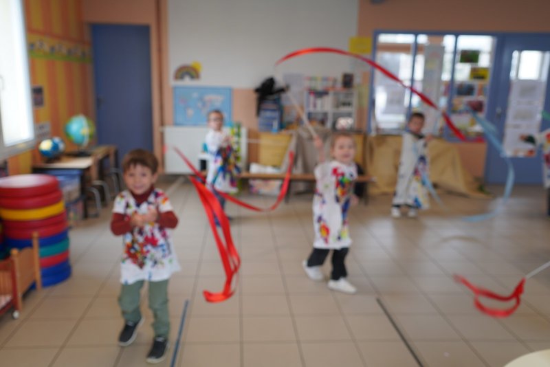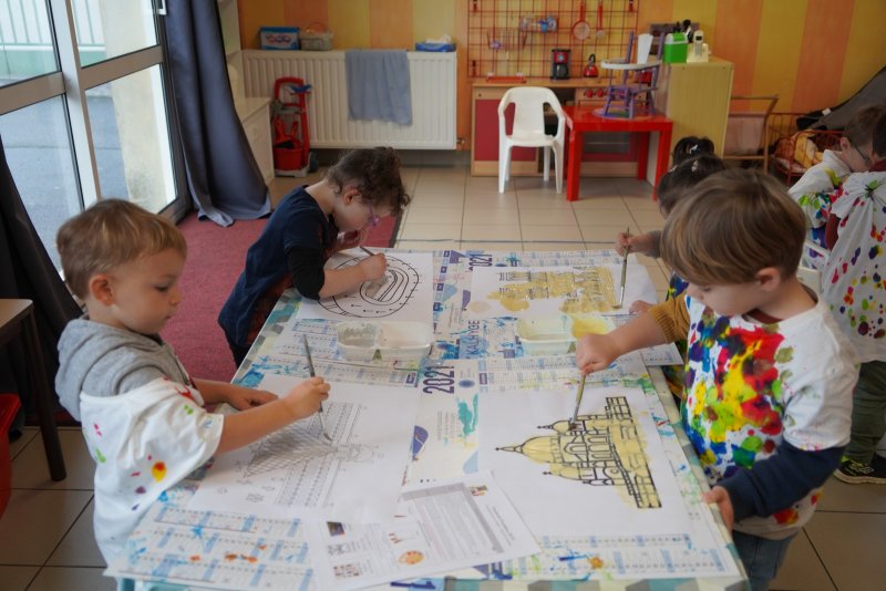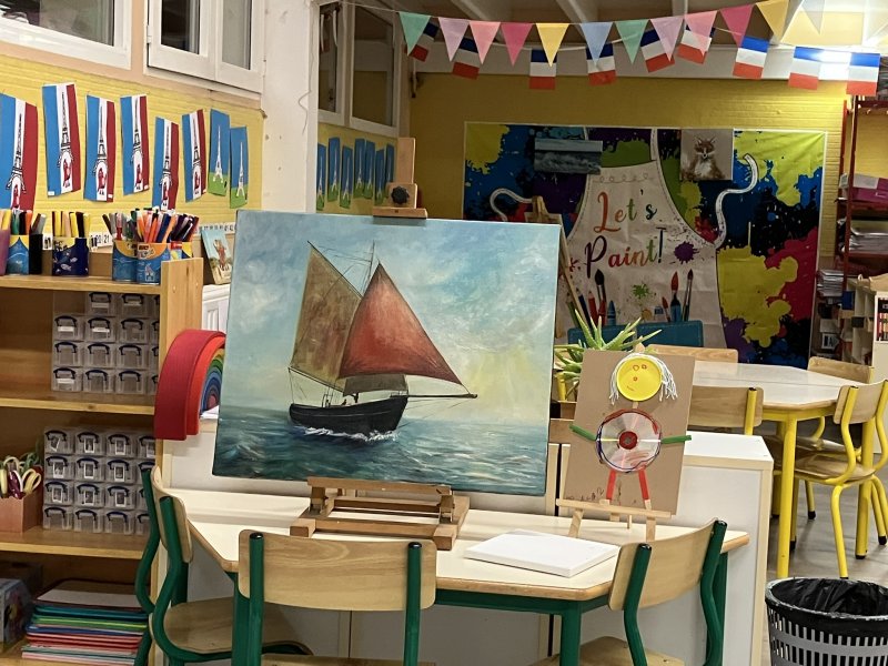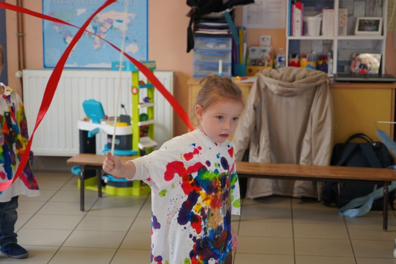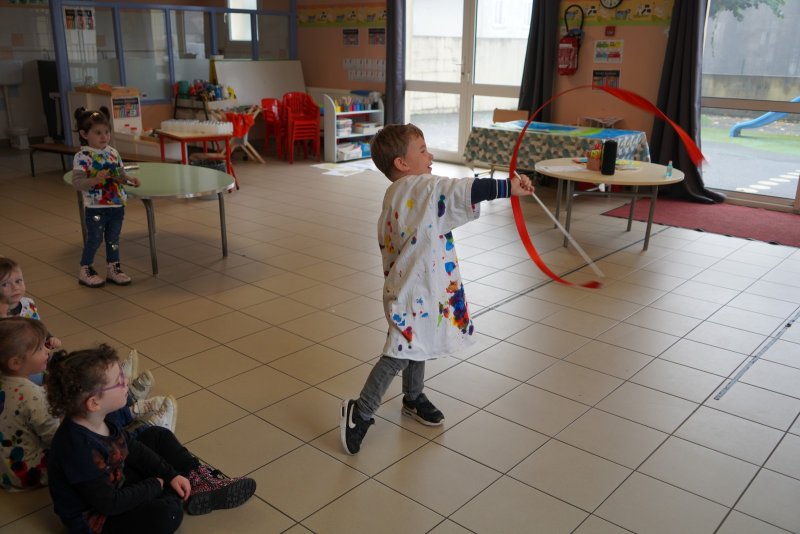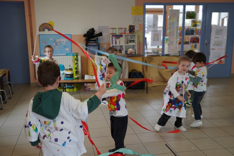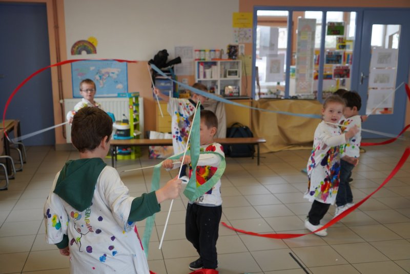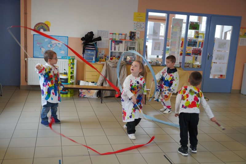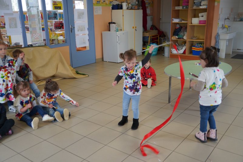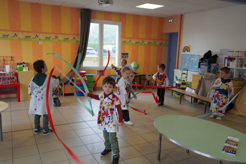 Comme au musée, les murs de la classe étaient décorés de copies d’oeuvres d’art célèbres et de toiles originales d’une mamie d’élèves artiste peintre, Irène Pouvreau. Les enfants ont participé à de nombreux ateliers comme l’apprentissage d’une chanson sur les couleurs, un jeu de mémoire sur les artistes et leur matériel, la réalisation d’une fresque représentant des immeubles et des monuments parisiens, l’écoute d’albums sur les musées parisiens, des activités motrices ludiques comme le sculpteur et sa statue ou le jeu des statues.