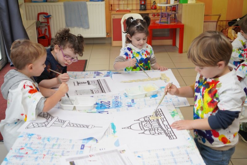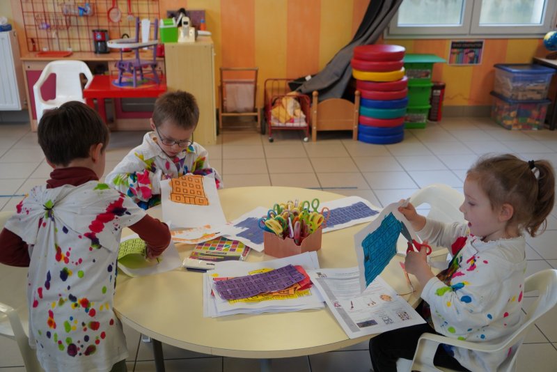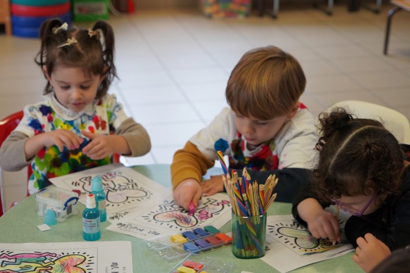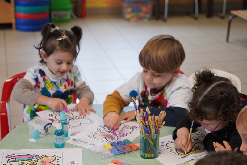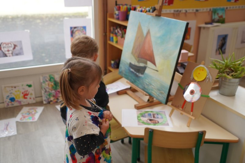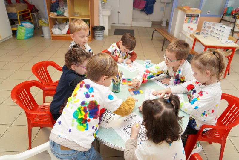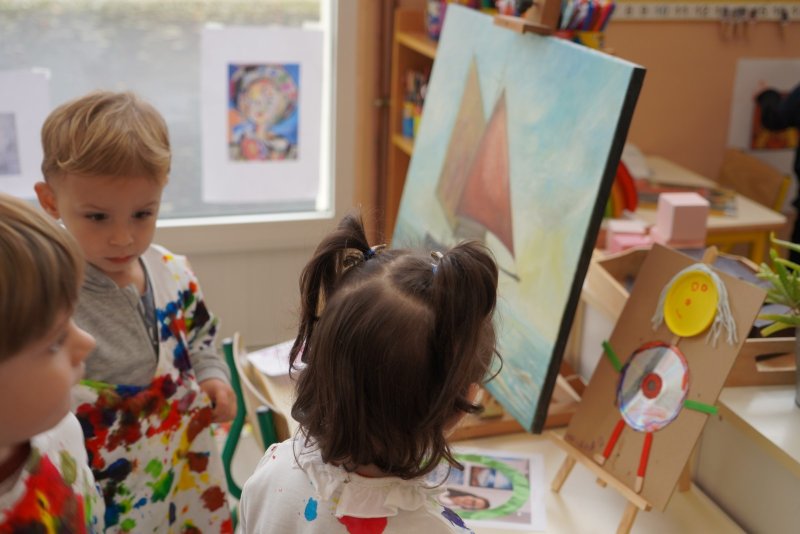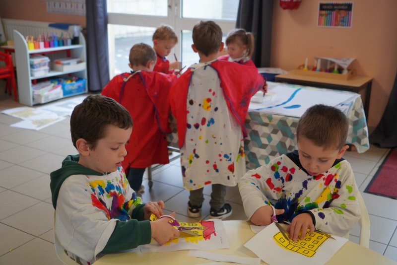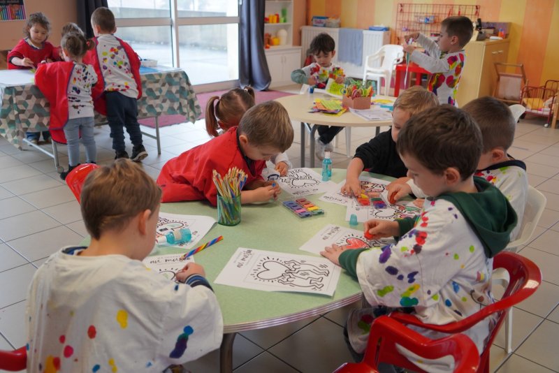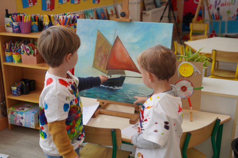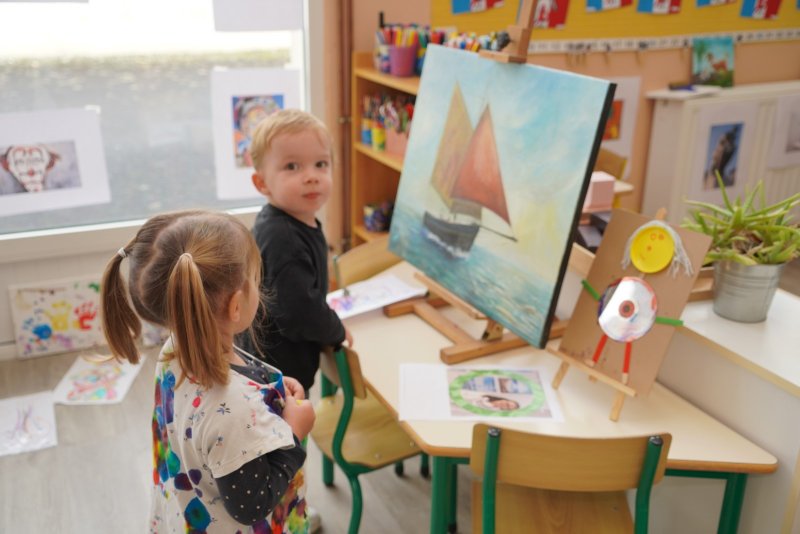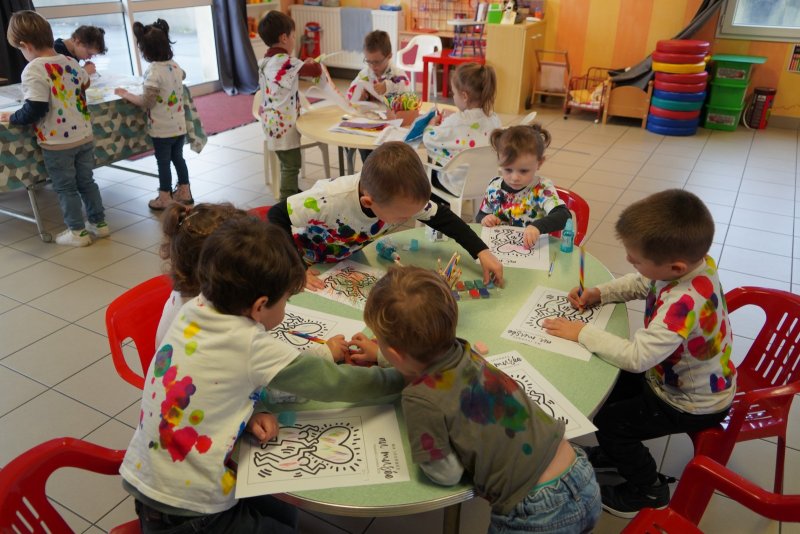 Comme au musée, les murs de la classe étaient décorés de copies d’oeuvres d’art célèbres et de toiles originales d’une mamie d’élèves artiste peintre, Irène Pouvreau. Les enfants ont participé à de nombreux ateliers comme l’apprentissage d’une chanson sur les couleurs, un jeu de mémoire sur les artistes et leur matériel, la réalisation d’une fresque représentant des immeubles et des monuments parisiens, l’écoute d’albums sur les musées parisiens, des activités motrices ludiques comme le sculpteur et sa statue ou le jeu des statues.