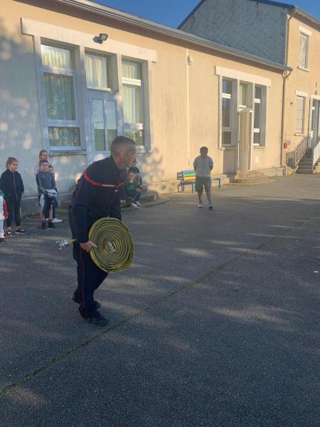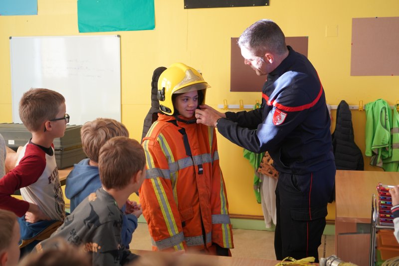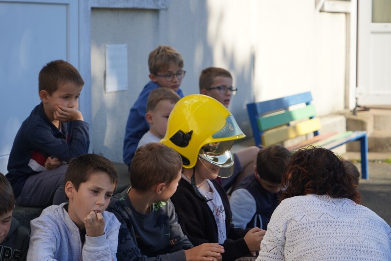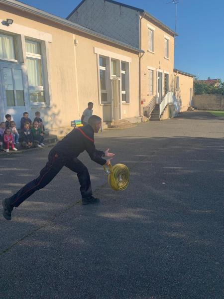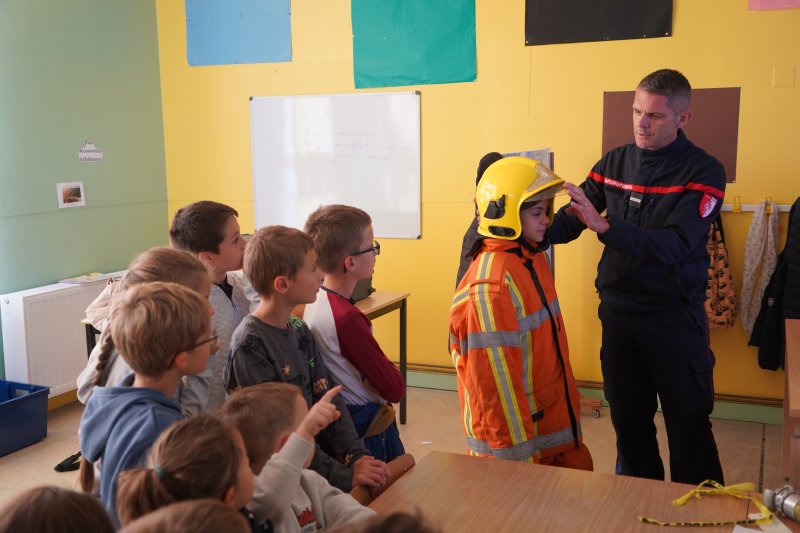 L’enthousiasme des enfants a grandi lorsqu’ils ont pu découvrir et essayer le matériel : casque, tenue de feu, lance. Yohann a expliqué les qualités nécessaires pour devenir pompier professionnel. Il faut être sportif. Le concours impose des épreuves de natation, de course, et de tractions. Mais il faut aussi réussir des épreuves écrites en français et en mathématiques, et convaincre un jury.
