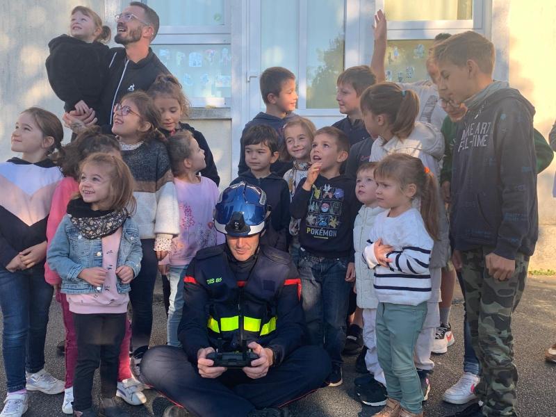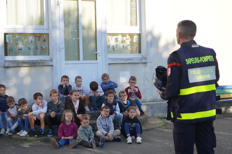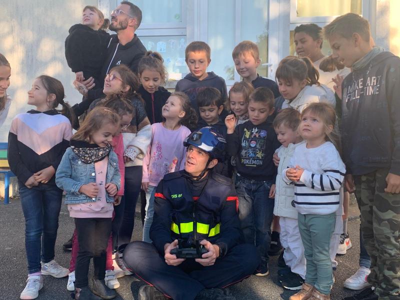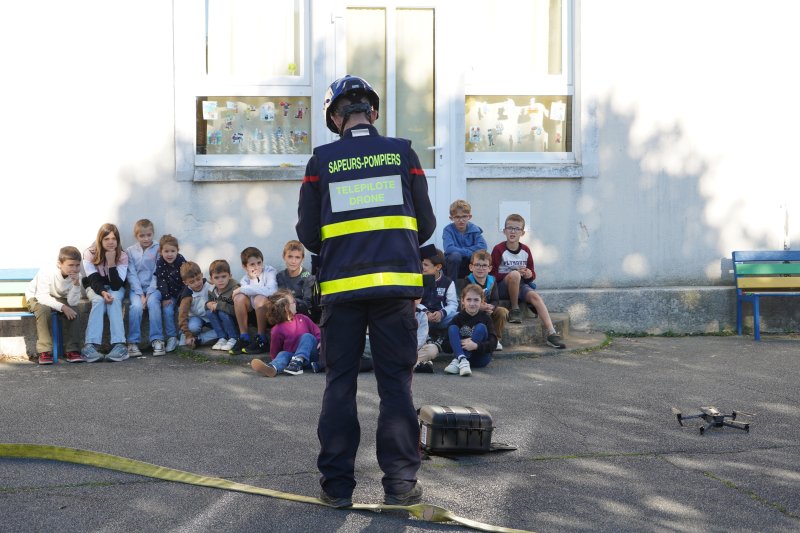 Les élèves ont été particulièrement impressionnés par la démonstration du drone, dont Yohann est télé pilote certifié. Le drone est un outil précieux. Il permet de voir rapidement les zones de feu, de localiser des personnes isolées et d’intervenir plus efficacement.