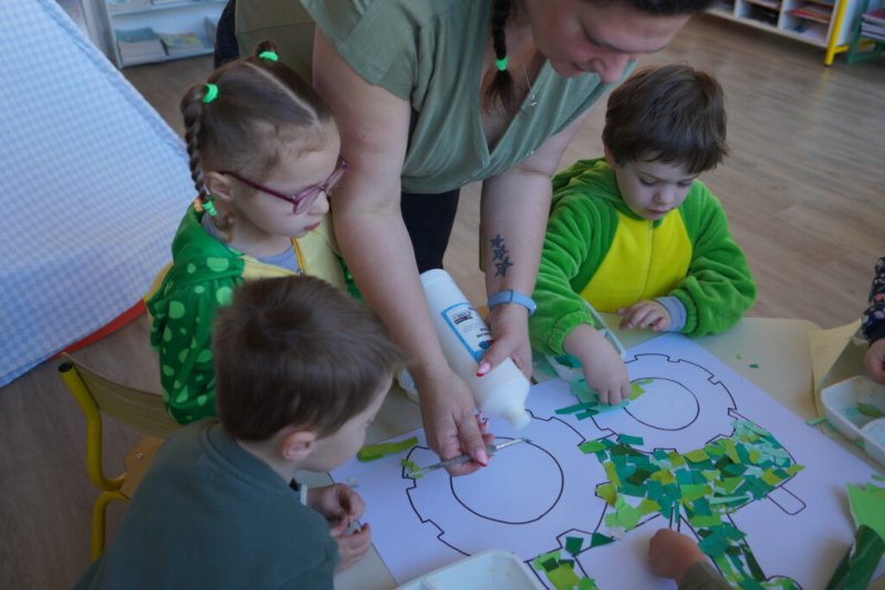 Des jeux ont rythmé la journée, comme le loto vert ou encore un atelier de tri d’objets verts à l’aide de pinces, demandant concentration et habileté.