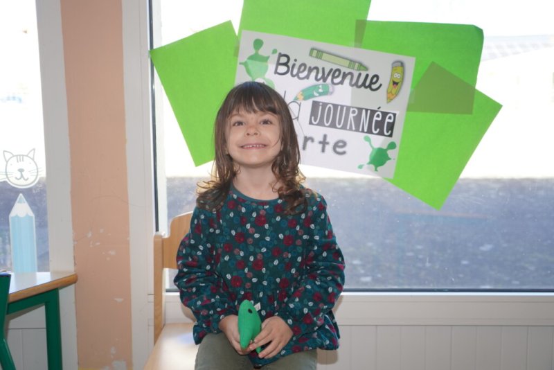 Mardi dernier, les élèves de TPS, PS et MS ont vécu une journée verte dans la classe. Tout au long de la journée, de nombreuses activités ont permis d’explorer cette couleur sous toutes ses nuances : vert fluo, vert foncé, vert clair, kaki, émeraude, vert bouteille ou encore vert pastel.